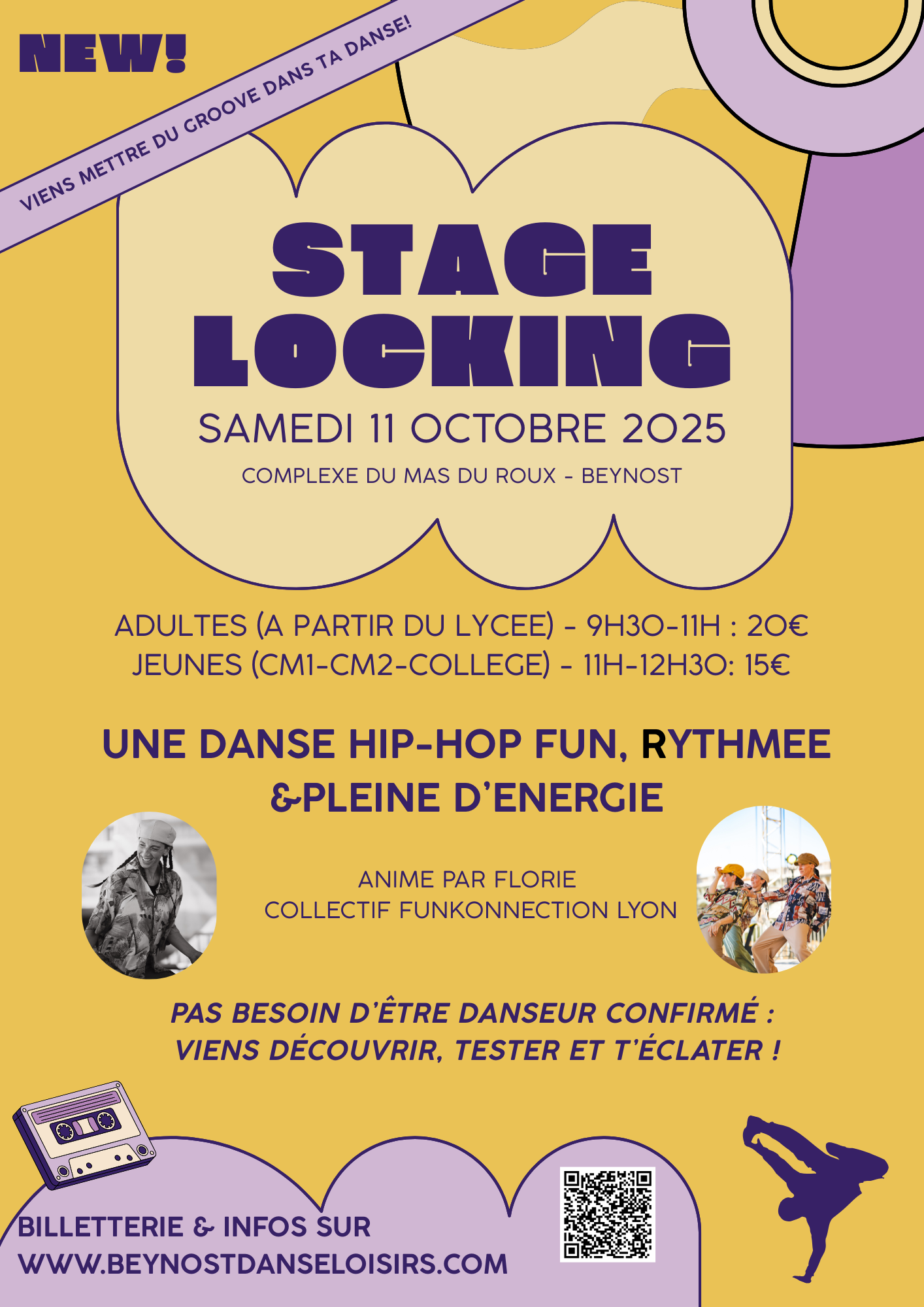 Une danse hip-hop fun, rythmée & pleine d’énergie! Connaissez-vous le locking ?Issu de la musique funk dans les années 70 à Los Angeles, rendu célèbre par l’émission Soul Train, le locking est une danse hip-hop : dynamique, festive et joyeuse pleine de groove et d’énergie accessible à tous, ados comme adultes Avec Florie alias Panda,
