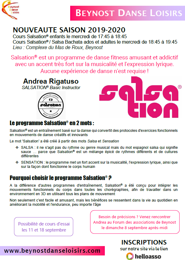 SALSATION® avec Andrea! N’oubliez pas, pour vous inscrire, c’est sur Hello Asso que cela se passe 🙂